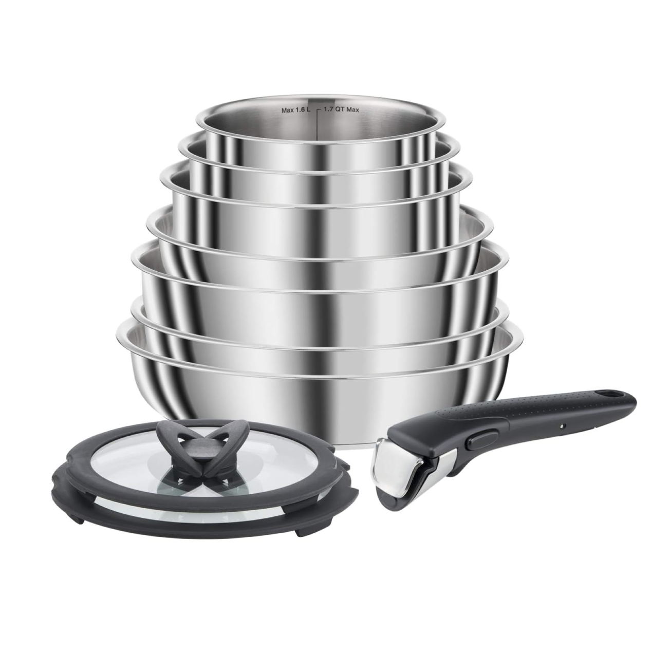 Batterie de cuisine facile à empiler et à ranger grâce à la poignée détachable