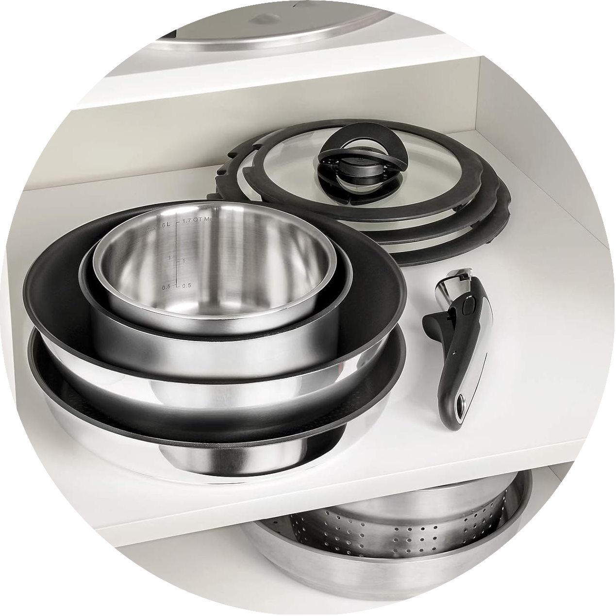Tous les ustensiles de cuisson dont vous avez besoin, avec un rangement gain de place optimal !